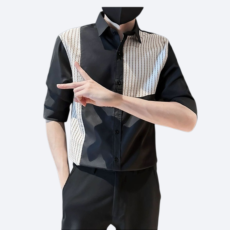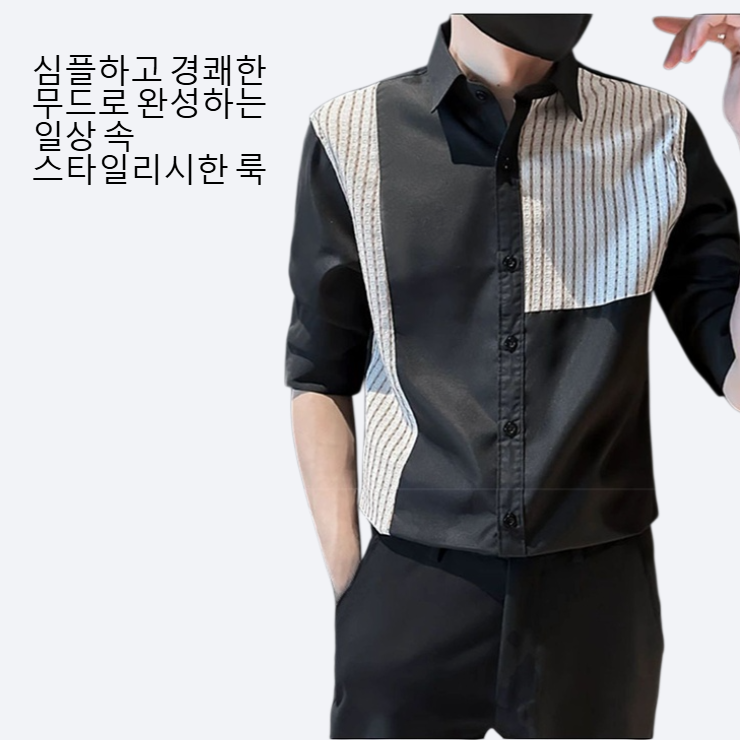 남성 여름 얇은 접합 5 부 소매 와이드 셔츠