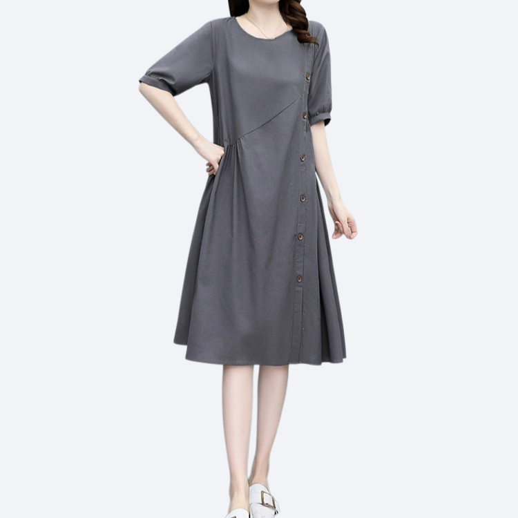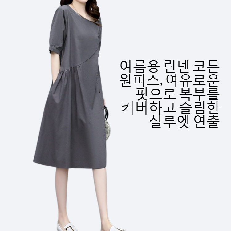 면 마 혼방 소재, 루즈핏 디자인, 여유로운 착용감, 데일리 원피스, 내추럴 스타일, 다양한 코디 가능, 여름 필수 아이템