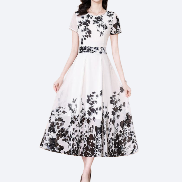 수묵 프린트 디자인, 고급스러운 원단 사용, 편안한 착용감, 데일리 및 특별한 날 모두 활용 가능, 세련된 실루엣 연출