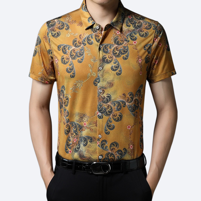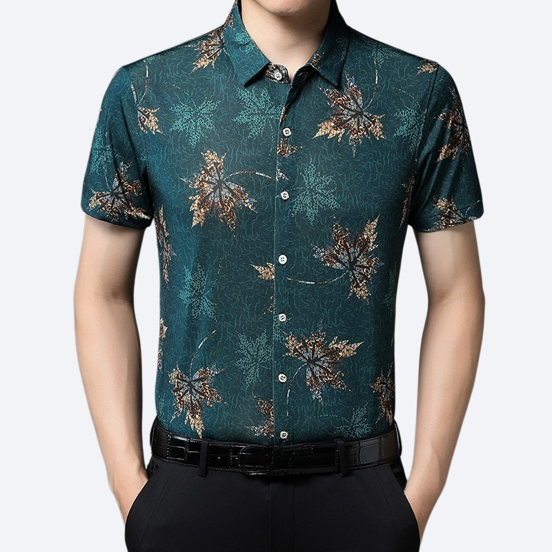 편안한 통기 아이스 프린트 남성 반팔 셔츠
