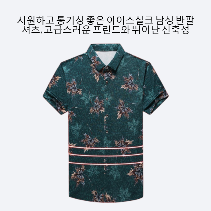 얇고 시원한 아이스 원단, 우수한 통기성, 스타일리시한 프린트 디자인, 여름철 남성 데일리 반팔 셔츠, 편안한 착용감 제공